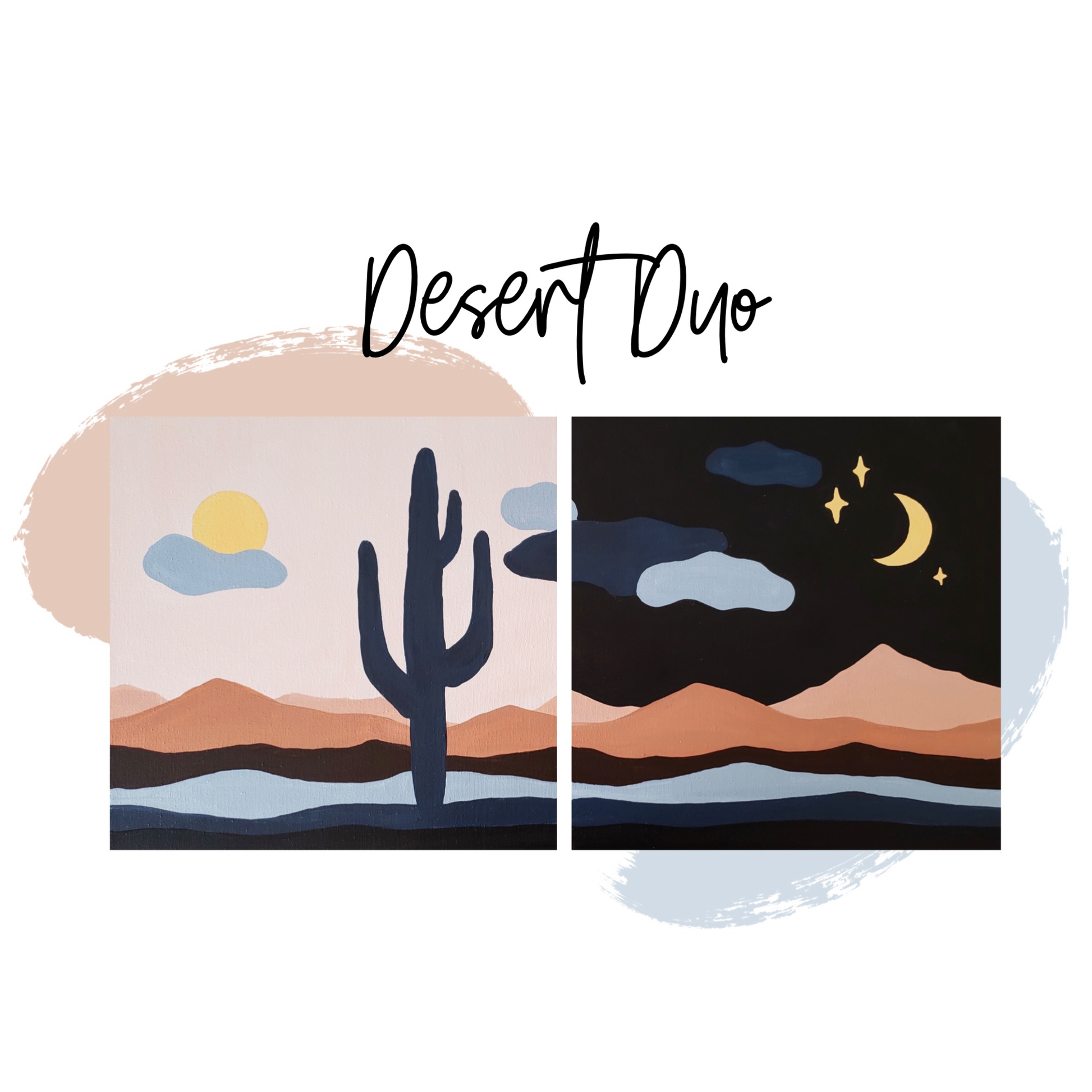 Paint not one, but two desert themed paintings with the Desert Due Art Box! This kit is designed for one person to paint two paintings that compliment each other.