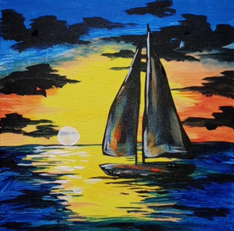 Come sail away, come sail away, come sail away with me.... Just imagine the perfect Sunset Sail at the end of a perfect summer! Join us as we create this painted sky full of color!